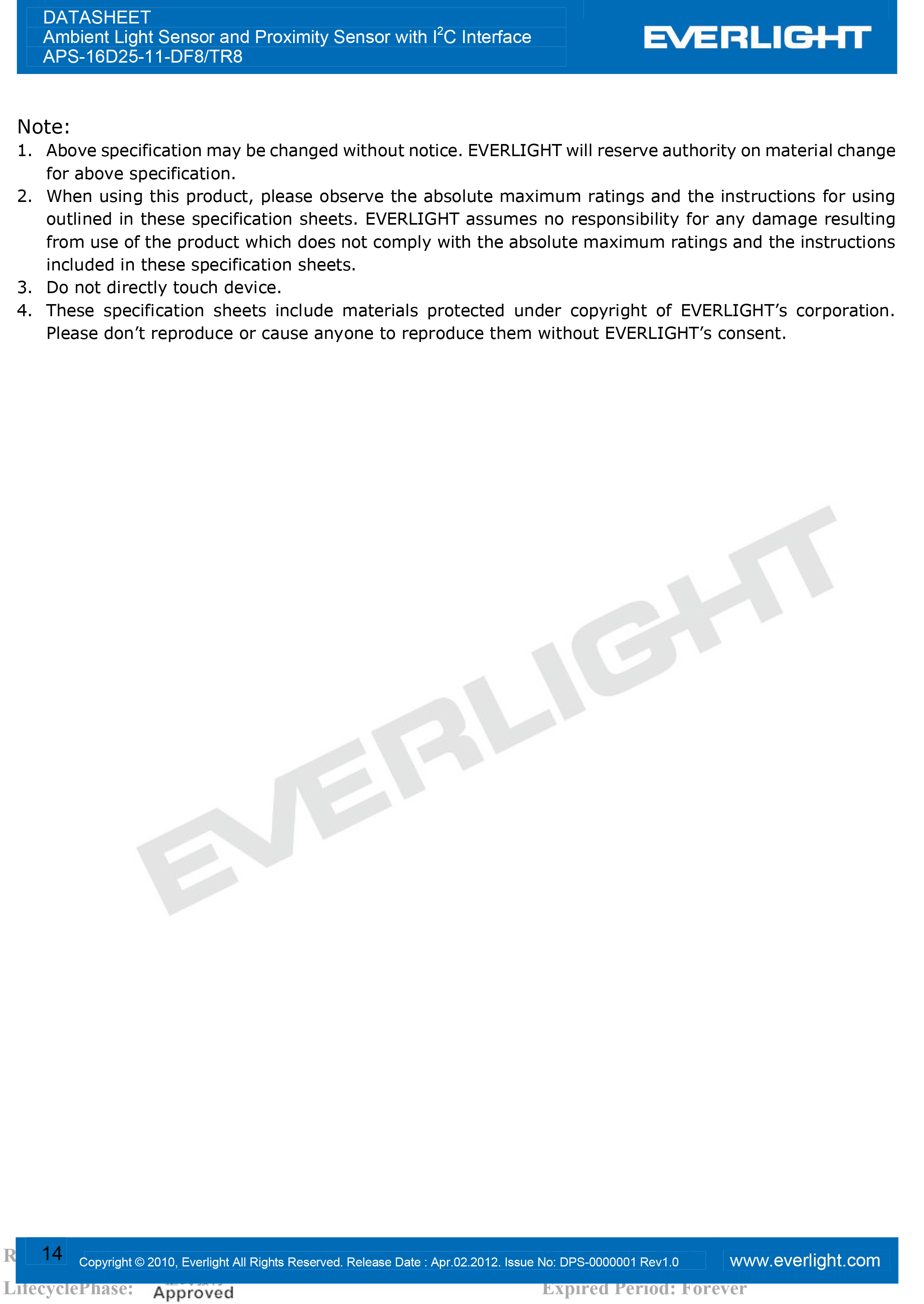 EVERLIGHTAmbient Light Sensor and Proximity Sensor APS-16D25-11-DF8/TR8 Datasheet