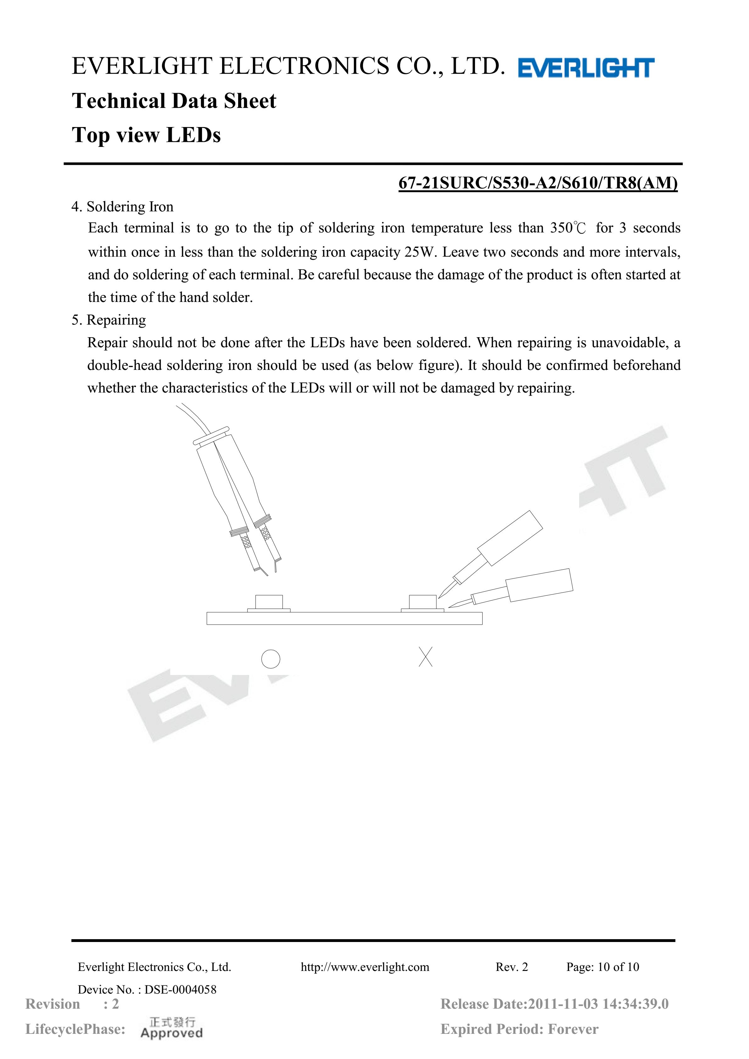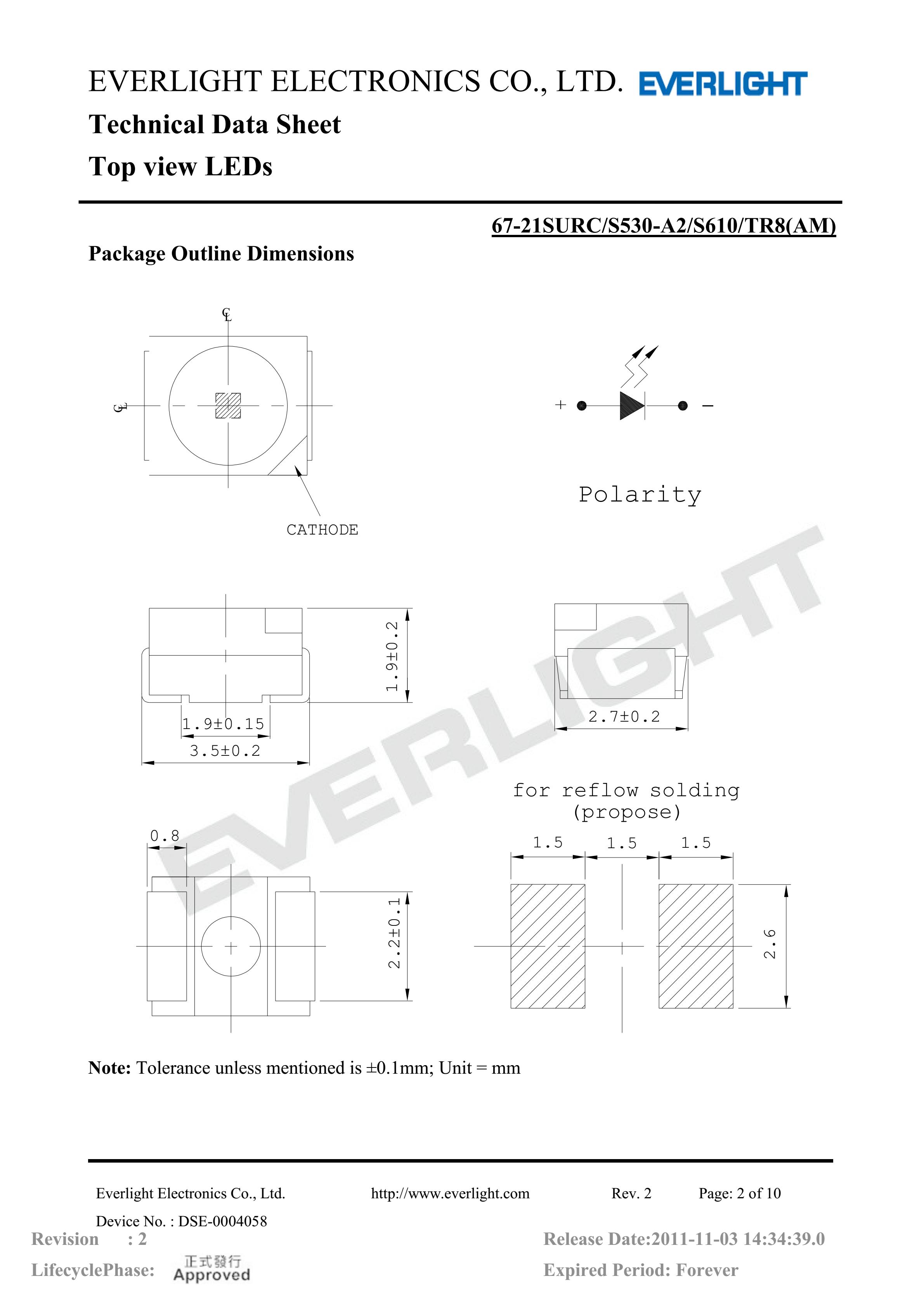 Everlight 3528 Car lamp beads 67-21SURC/S530-A2/S610/TR8(AM) Datasheet