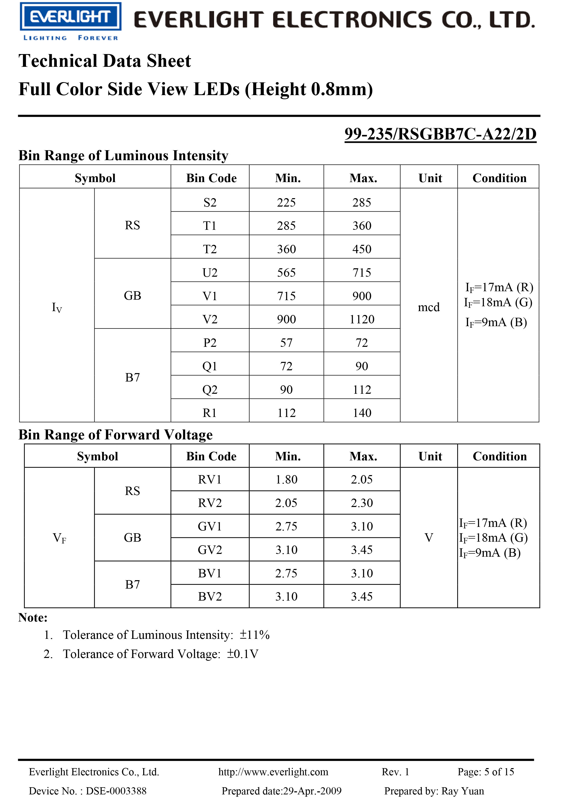 EVERLIGHT LED RGB Full color LED 99-235-RSGBB7C-A22-2D Datasheet |