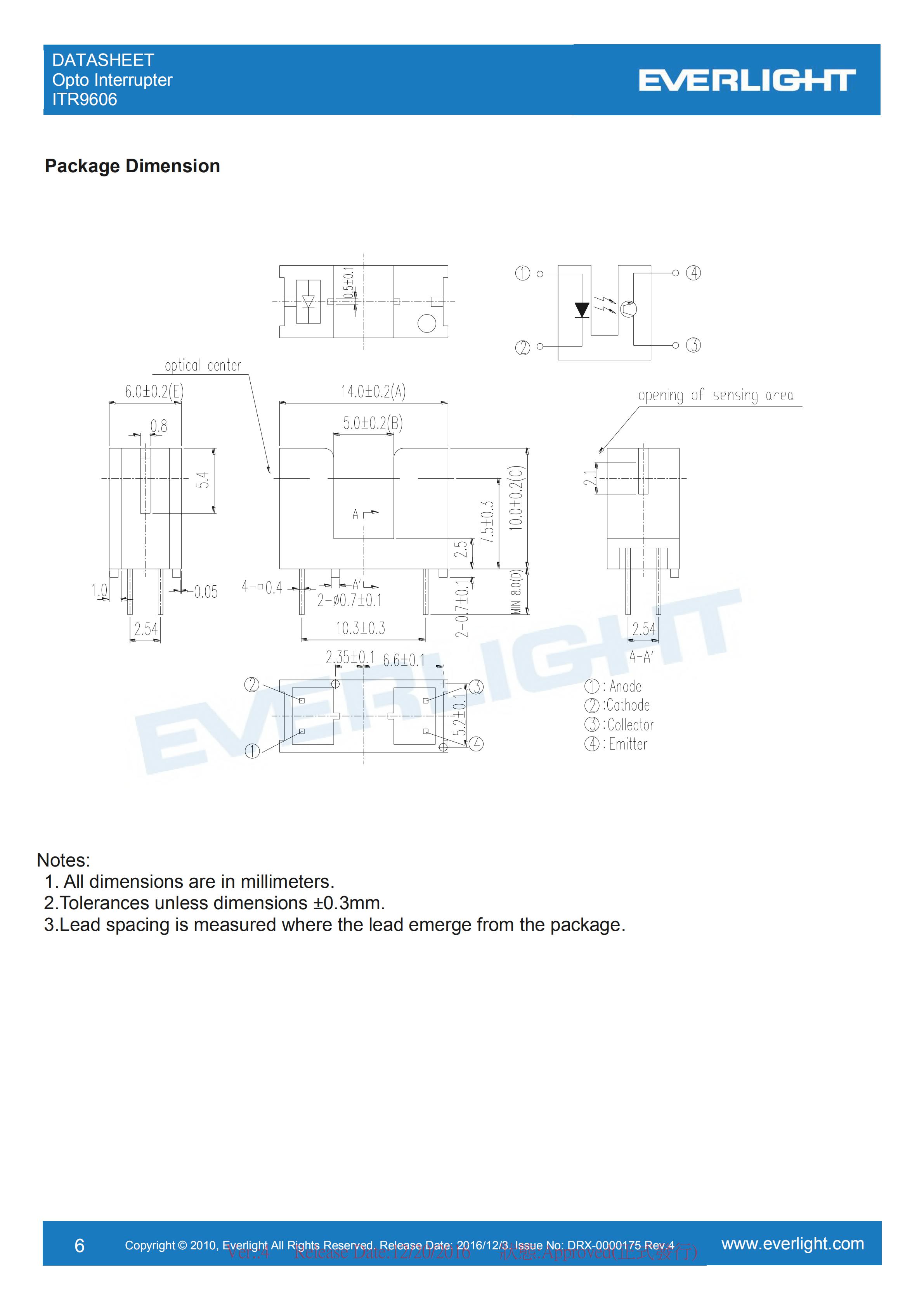 EVERLIGHT Optical Switch ITR9606 Opto Interrupter Datasheet